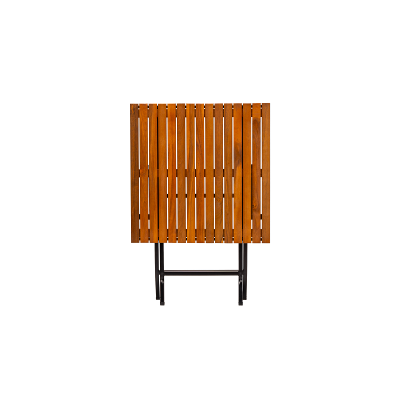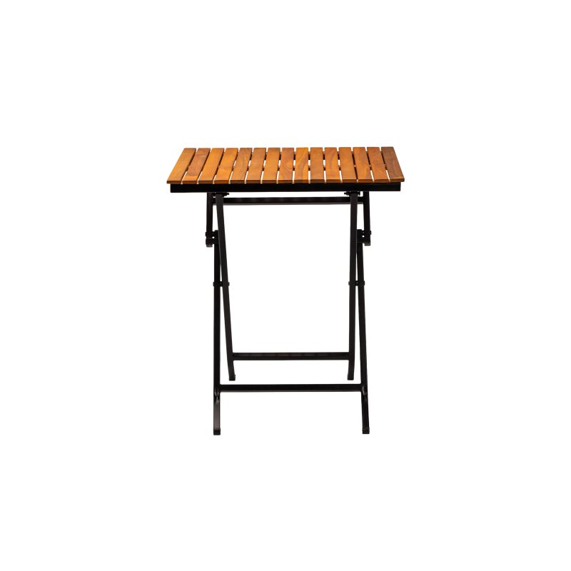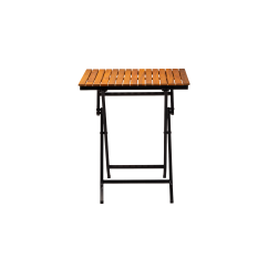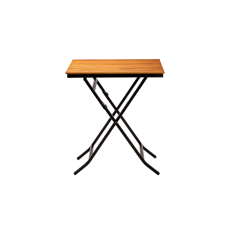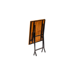 Stabilná oceľová konštrukcia s práškovým lakovaním zaručuje odolnosť pri intenzívnom používaní, zatiaľ čo drevená doska dodáva prirodzený a nadčasový charakter. Skladacia funkcia uľahčuje skladovanie a rýchlu prípravu priestoru, čo je obzvlášť dôležité v sezónnych prevádzkach a tam, kde je potrebná flexibilita usporiadania.