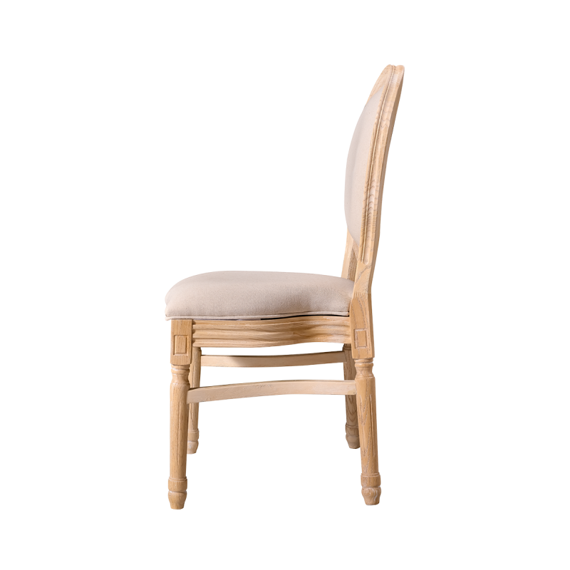 Vyrobená z masívneho dreva, stolička poskytuje stabilitu a trvácnosť potrebnú na každodenné používanie v eventových priestoroch. Čalúnené sedadlo aj operadlo zabezpečujú vysoký komfort sedenia aj počas dlhých osláv a recepcií.